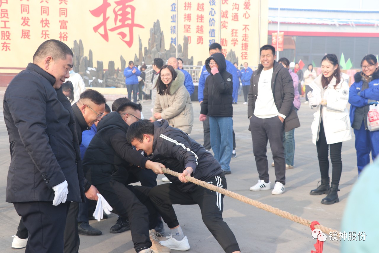 在拔河比賽中,各隊成員齊心協力,奮力向前,展現了鎂神人團結拼搏的精神風貌。